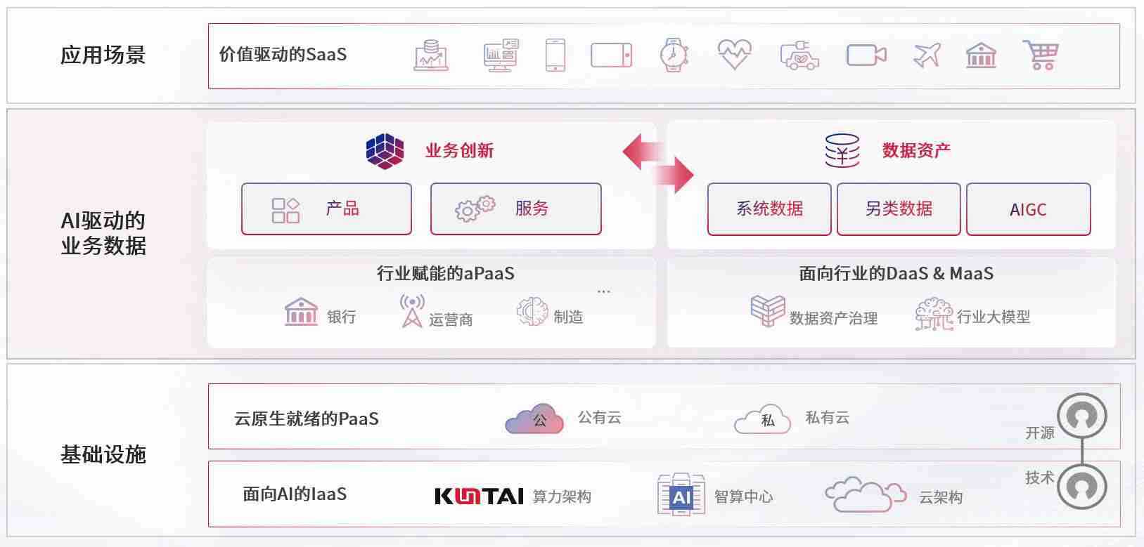 数字时代,,,,围绕企业数字化转型的关键要素,,k豆钱包数码开创性的提出数云融合战略和技术体系框架,,,着力在云原生、、、、数字原生、、、AI原生和信创产业上架构产品和服务能力,,为处在不同数字化转型阶段的快消零售、、、汽车、、、金融、、医疗、、政企、、、、教育、、、、运营商等行业客户提供泛在的敏捷IT能力和融合的数据驱动能力,,,,构建跨界融合创新的数字业务场景和新业务模式,,助力企业级客户建立面向未来的核心能力和竞争优势,,,,全面推动社会的数字化、、、智能化转型升级。。。。